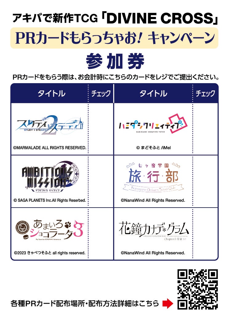 また、コミックマーケット103では「DIVINE CROSS」のPRカードも配布されます。
