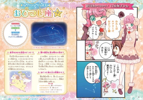 12星座をオリジナルキャラクターにして、マンガページと図鑑ページで紹介しています。