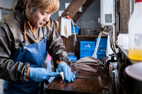 - 静岡県熱海市網代にある〈干物屋ふじま〉の店主は藤間義孝さん