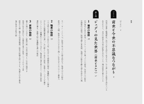本書では、ジュディ・オーノ氏がこれまでに鑑定した人々の前世とカルマ、そしてそれが現世の人生に与える影響について紹介しています。