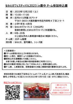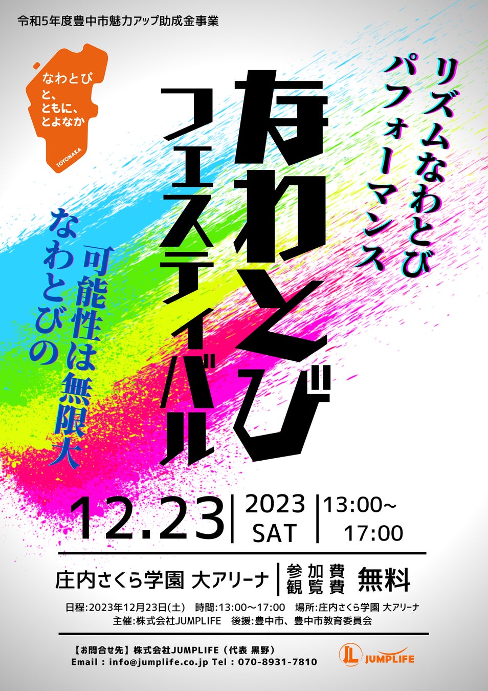 - 豊中市の小学生が参加するなわとびパフォーマンスの発表会「なわとびフェスティバル2023 in 豊中」が開催されます。