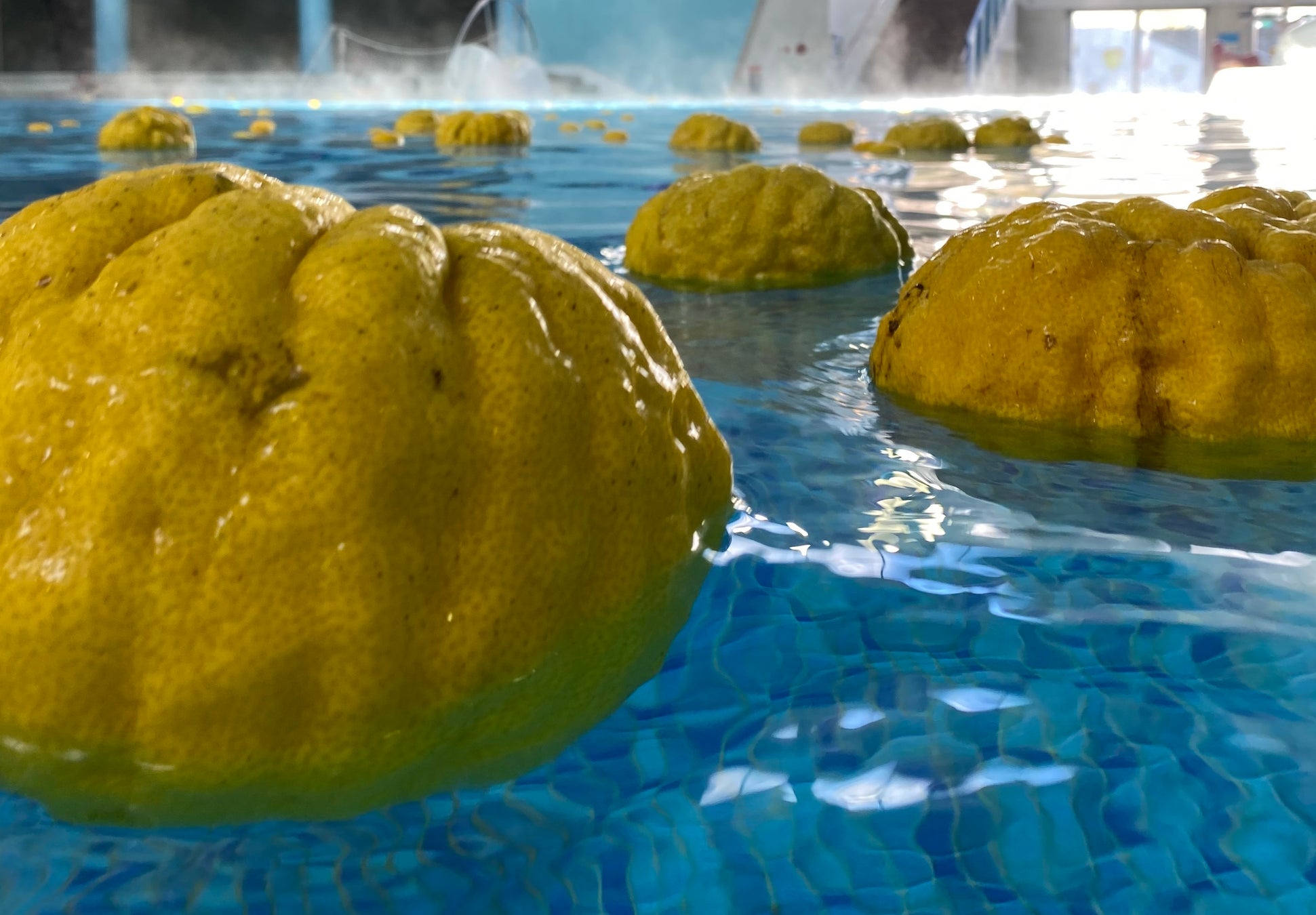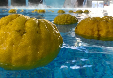 また、第4弾の「獅子ゆず風呂」では、特大サイズの「獅子ゆず」を使用し、ゴジラの皮膚のようなゴツゴツ感を再現しています。