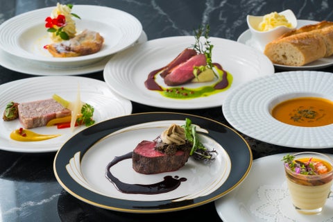 例えば、「チェリーバレー鴨胸肉の低温調理 クレソンとカシスのノエルソース」や「牛フィレ肉のロティール ~フォアグラのムースを添えたロッシーニ仕立て~」など、シェフが創り出すクリエイティブな料理を堪能できます。