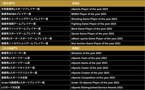 - 「日本eスポーツアワード」は、日本のeスポーツ界の功績と貢献を称える祭典