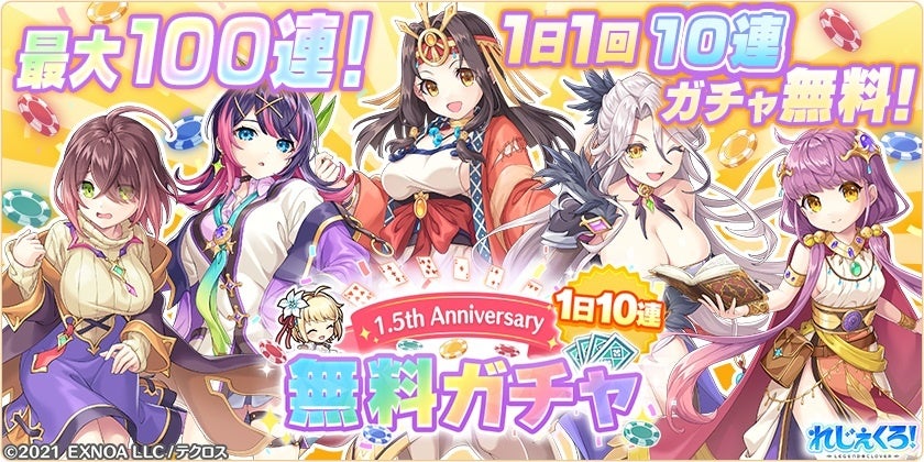 ▼1.5th Anniversary1日1回10連無料ガチャ開催!