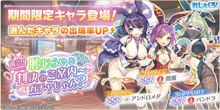 合同会社EXNOA(本社:東京都港区、CEO:村中 悠介、URL:https://games.dmm.com/)が運営するDMM GAMESにおいて、真の英雄となる王道ファンタジー『れじぇくろ!~レジェンド・クローバー~』(https://www.legend-clover.net/)は、最大100連!1日1回10連無料ガチャを開催することを発表しました。さらにバニー衣装の「閻魔」「アンドロメダ」「パンドラ」が登場、また、イベント報酬として限定キャラのバニー「リチャード1世」が手に入る1.5周年記念イベント『希望を賭けて!魂のオールイン!前編』も開催中です。