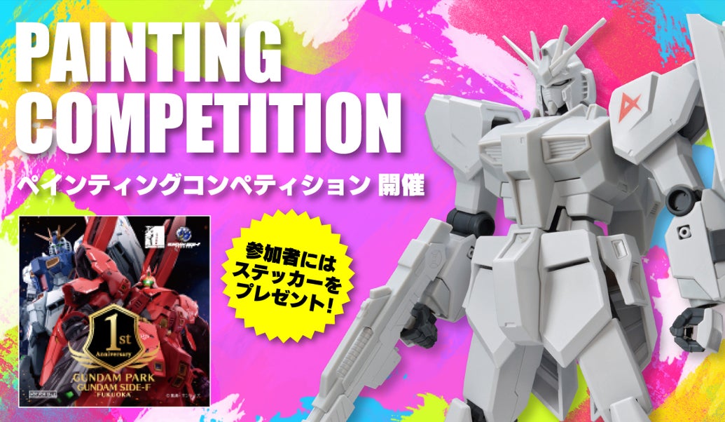 4/22(土)発売のENTRY GRADE 1/144ガンダムベース限定νガンダム[ペインティングモデル]を塗装した作品をガンダムパーク福岡内に展示します。参加者に特製ステッカーをプレゼント!