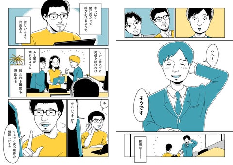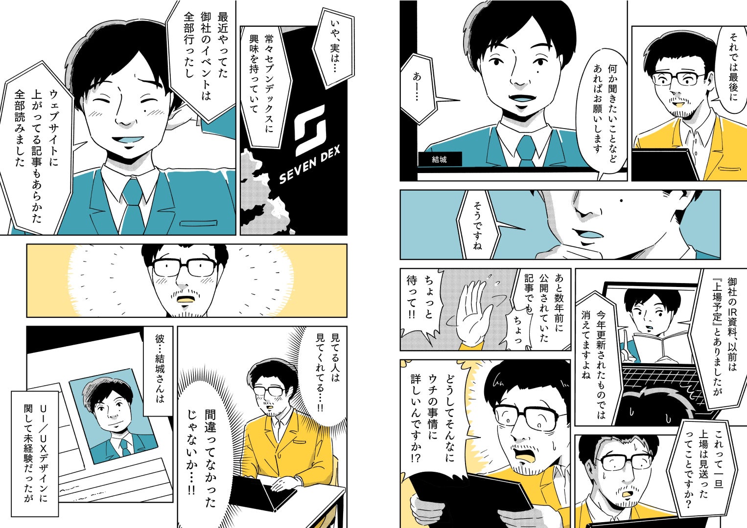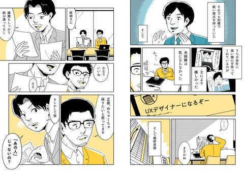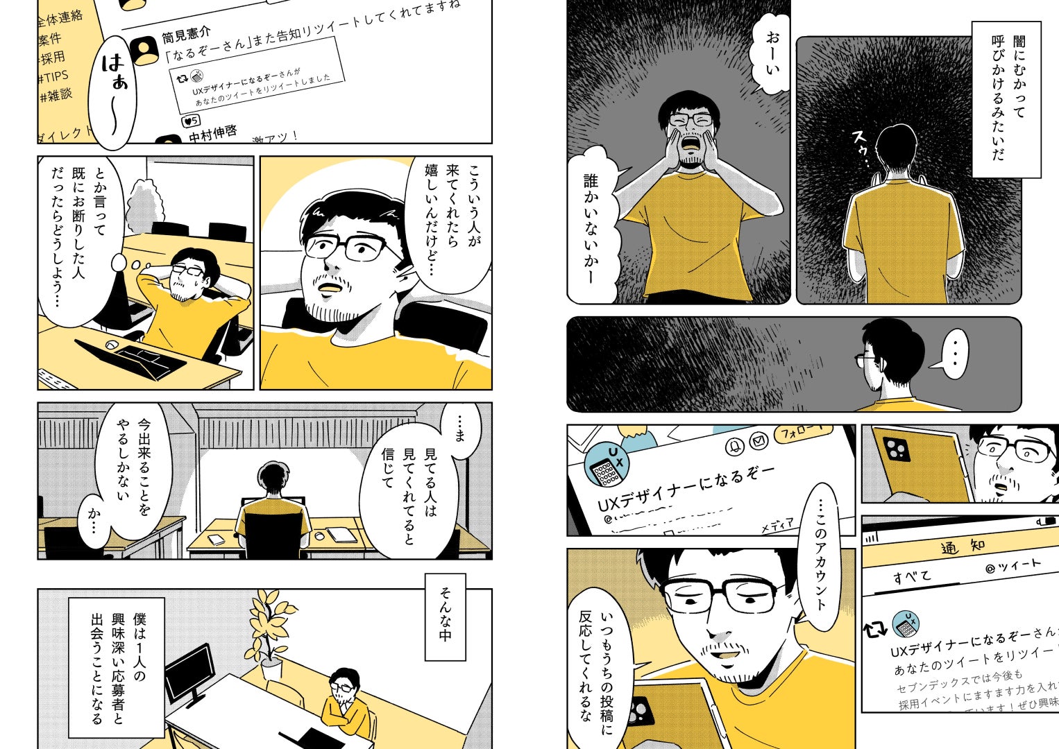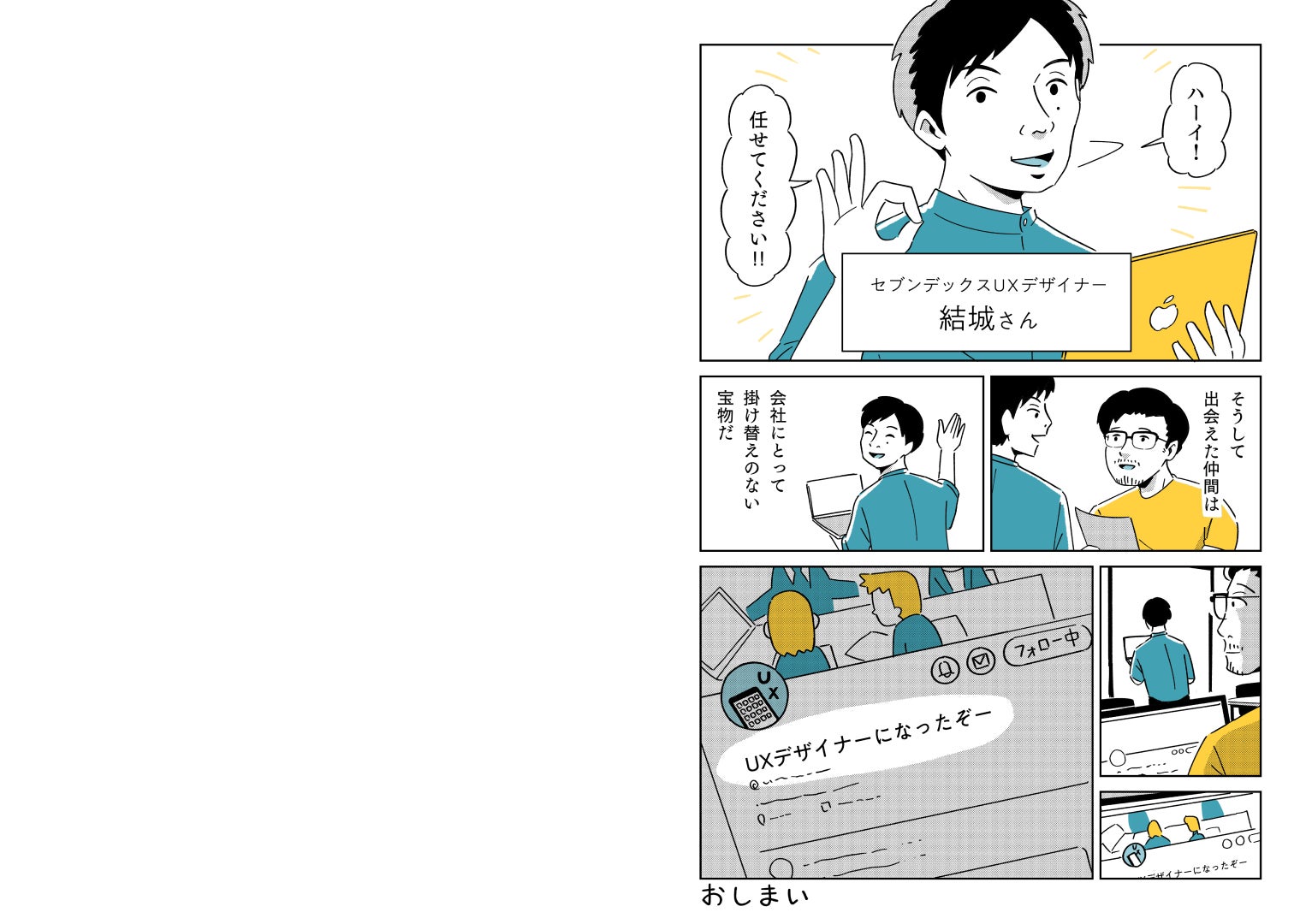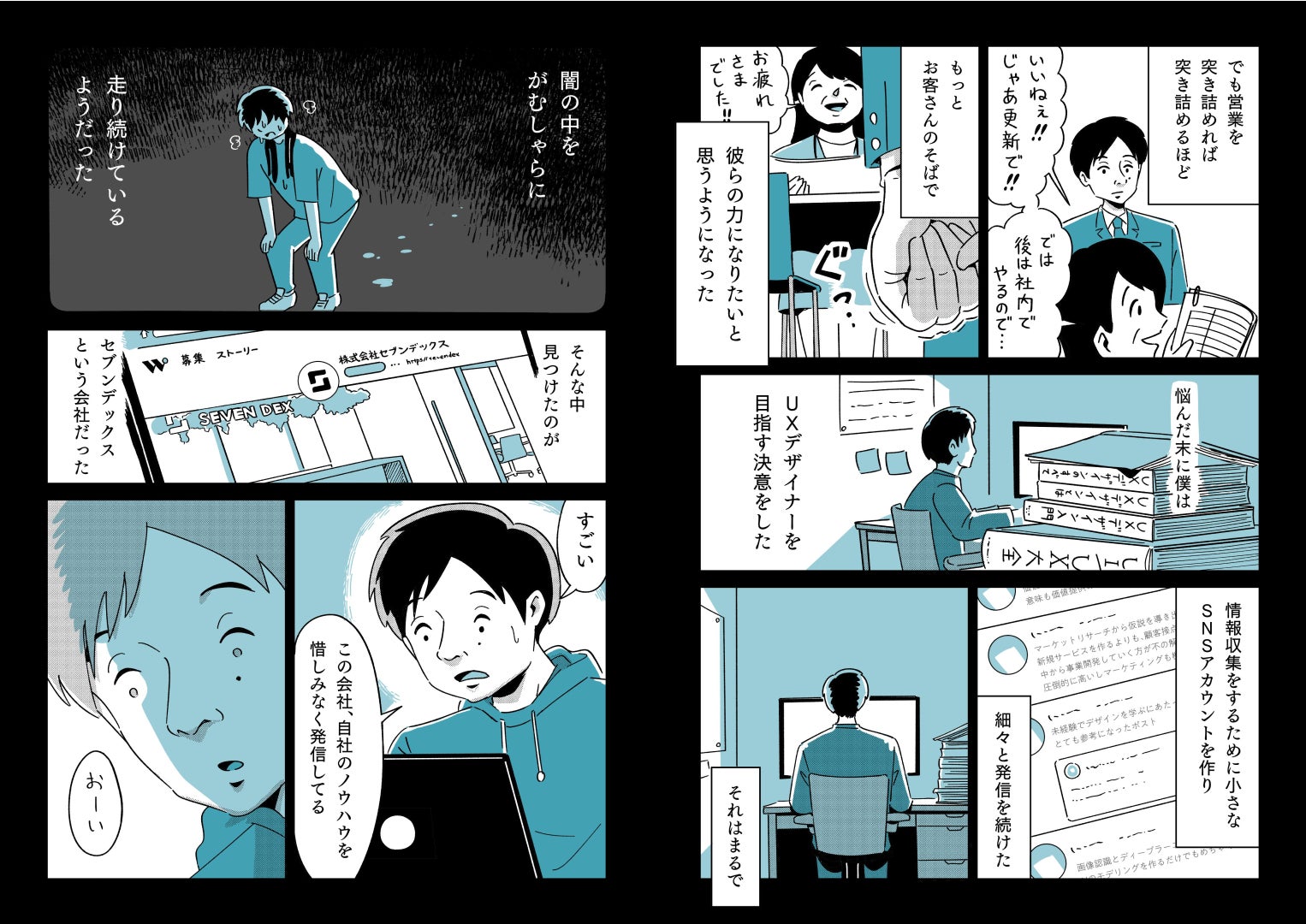 今回の漫画化されたエピソードは、Wantedlyを通じて未経験のUXデザイナーがセブンデックスに入社するという話です。