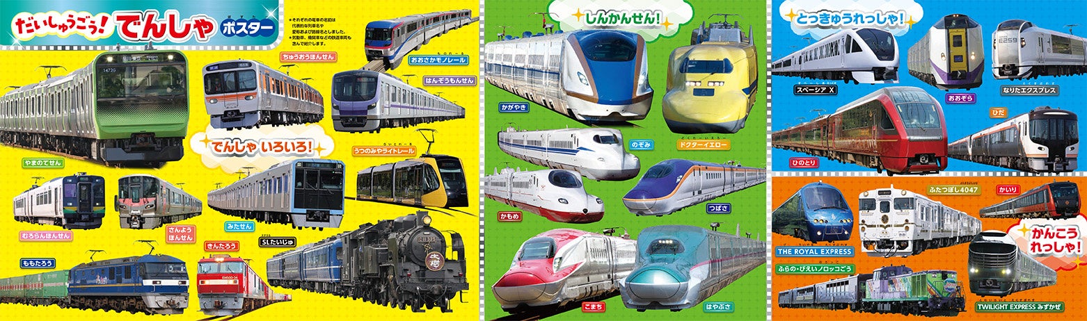- 本には全国の電車を詳しく紹介し、大迫力の写真や見開きページも楽しめる