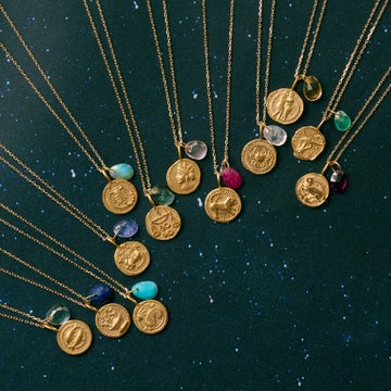 12星座のモチーフを繊細なレリーフにしたチャームと星座石チャームがセットになっており、お好みのスタイリングで楽しめます。