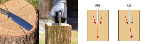 両刃構造で利き手を選ばず、薪をまっすぐ割ることも可能です。
