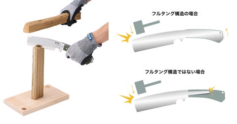 フルタング構造のブレードは衝撃に強く、豪快なバトニングが楽しめます。