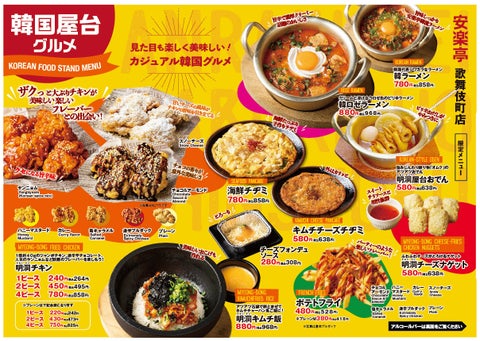 オリジナルメニューとしては、明洞チキンや韓ロゼラーメン、明洞キムチ飯などのポチャ料理が登場します。