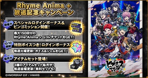 - TVアニメ第2期『ヒプノシスマイクDivision Rap Battle』Rhyme Anima +の放送記念キャンペーンも開催