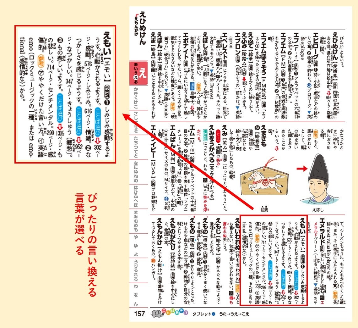 - 新しい言葉や意味が追加されており、小学生にもわかりやすい説明や用例も充実