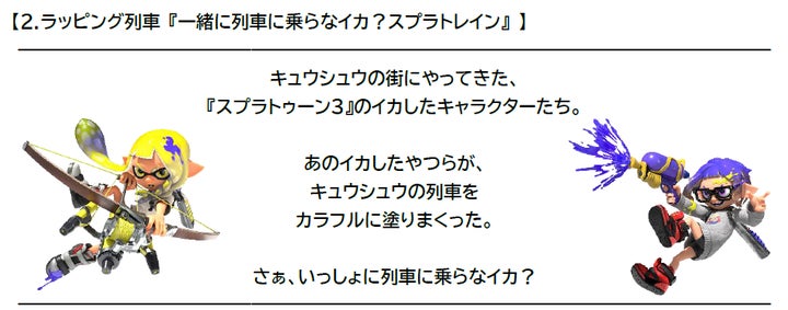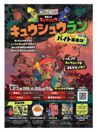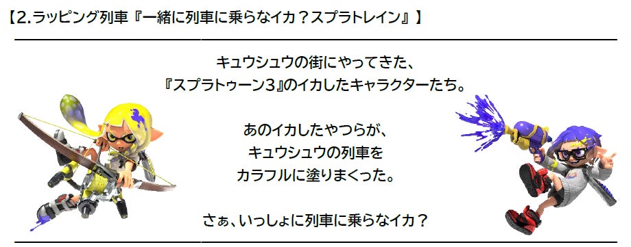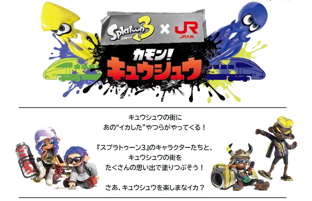 2024年1月9日から5月12日までの期間、JR九州とのコラボレーションイベント「スプラトゥーン3×JR九州 カモン!キュウシュウ」が開催されます。