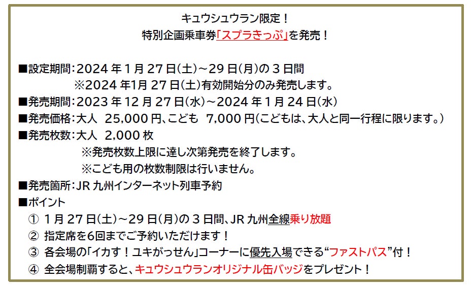 - 特別な列車「スプラトレイン」が運行され、博多駅での出発式も行われる