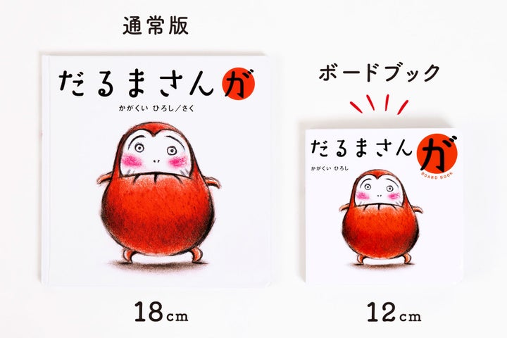 ボードブック版の『だるまさんが』、『だるまさんの』、『だるまさんと』は、定価880円(税込)で、サイズは12×12cmです。