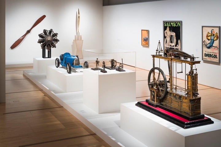 絵画や彫刻だけでなく、ポスターや蓄音機など幅広い作品が展示され、未来の生活について問いかけます。