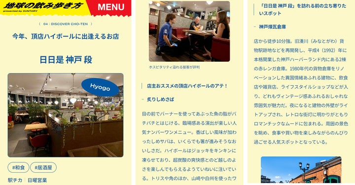 特設サイトでは、おすすめ店周辺の観光情報や頂店ハイボールの条件を紹介しています。