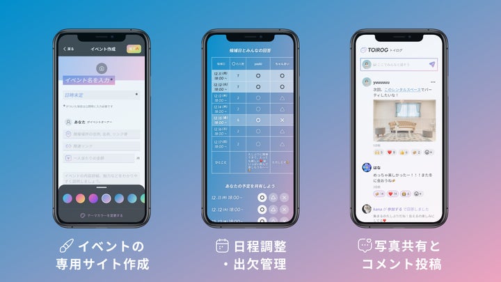- イベントの日程調整や出欠管理など、主催者をサポート