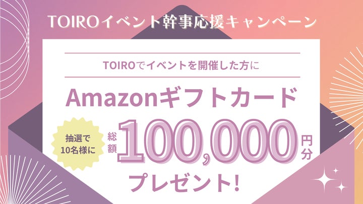 - TOIROでイベント作成開催した方の中から抽選で10名にAmazonギフトカード1万円分をプレゼント