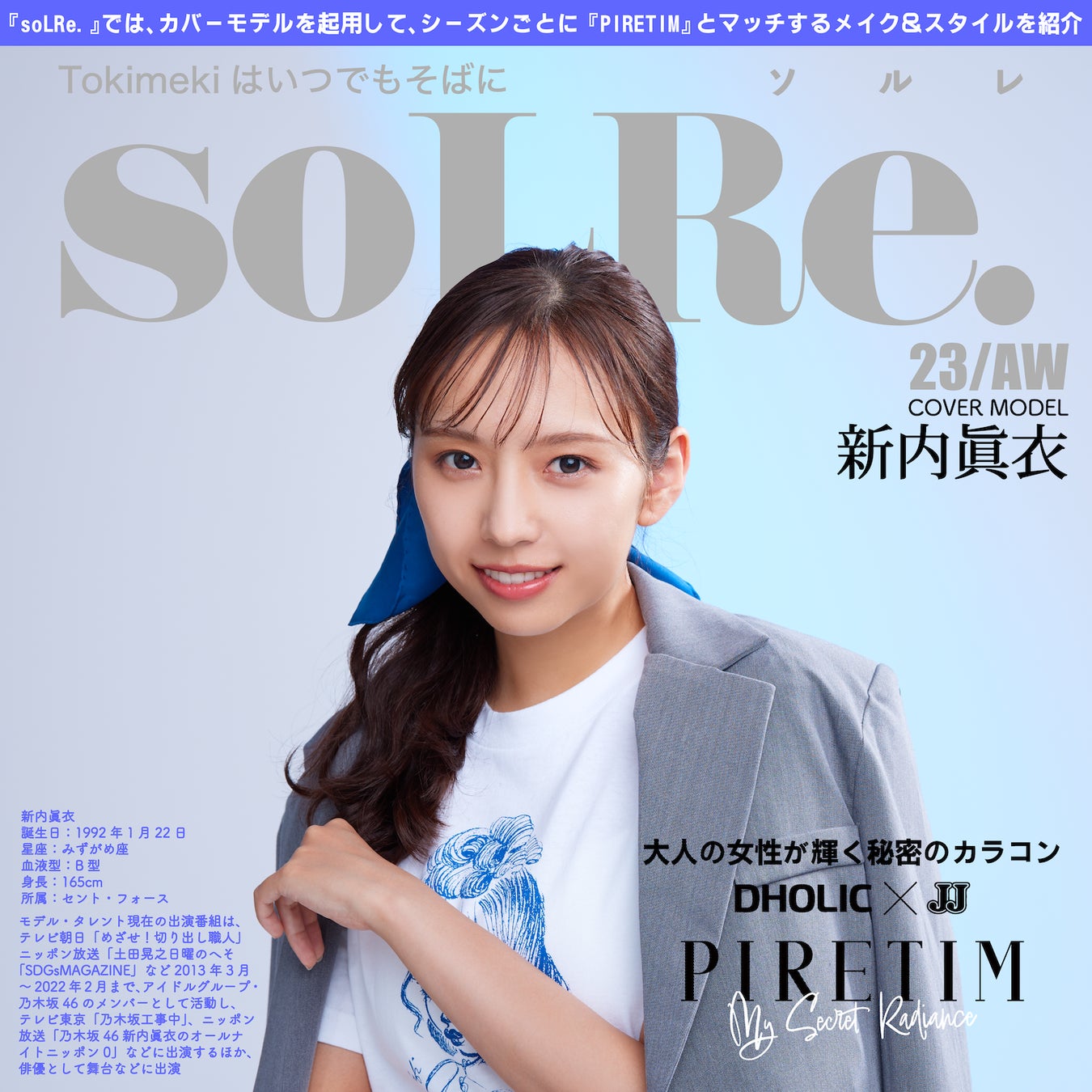 『soLRe.』では、元乃木坂46の新内眞衣さんがカバーモデルとして登場し、ナチュラルで魅力的な瞳を演出するメイク&スタイルを紹介します。