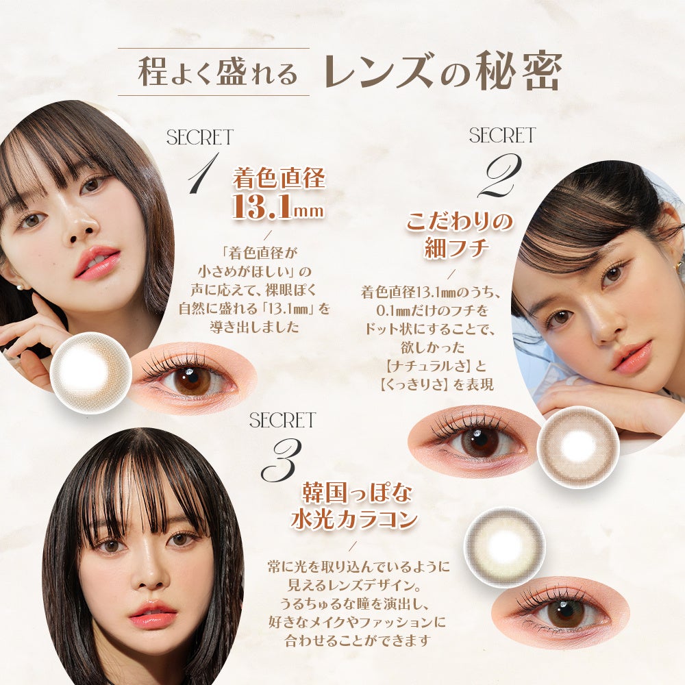 また、女性向けファッションメディア『JJ』との連動も行い、カラコンメイク&スタイルアイデアなど、さまざまなコンテンツを提供します。