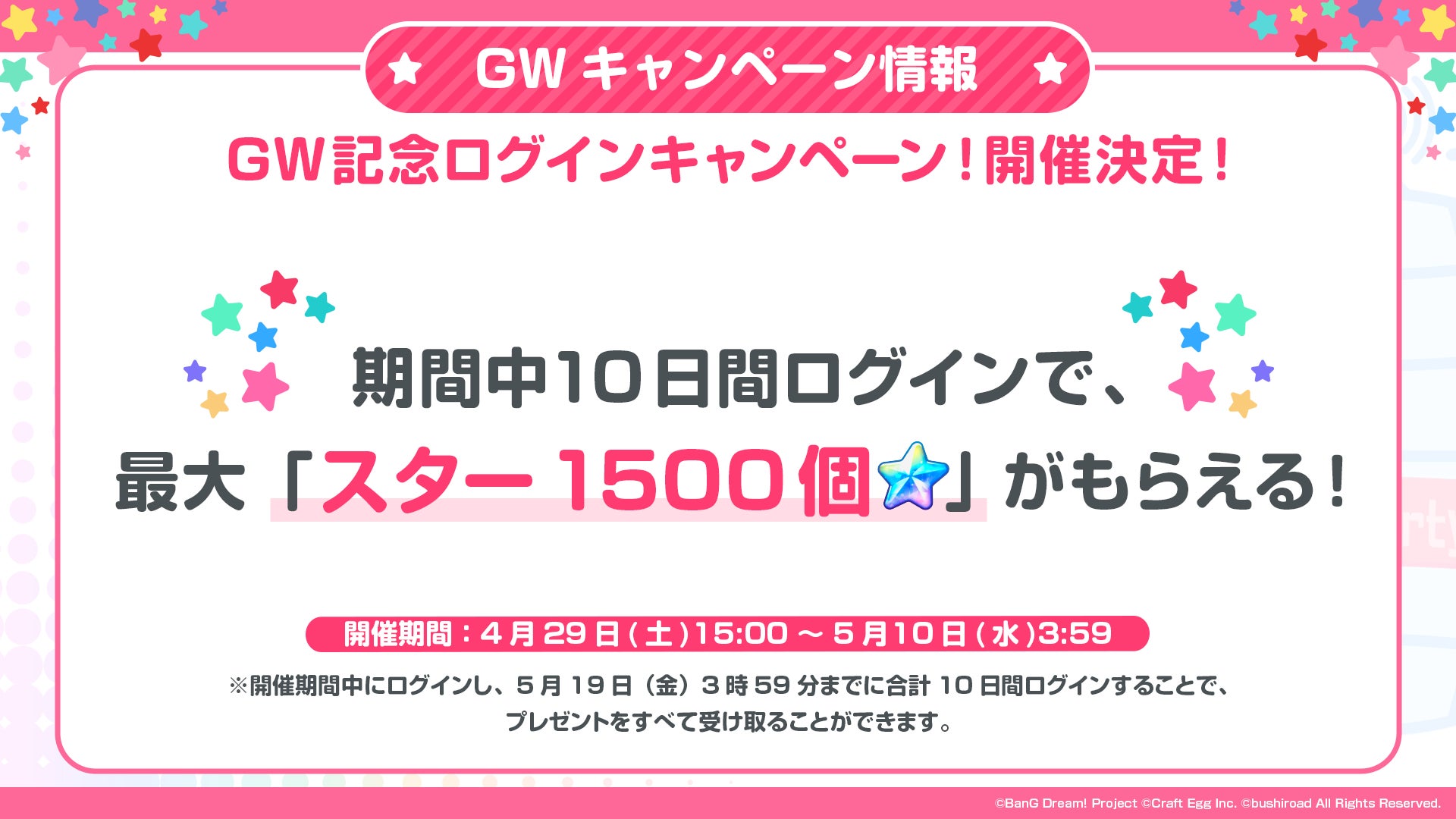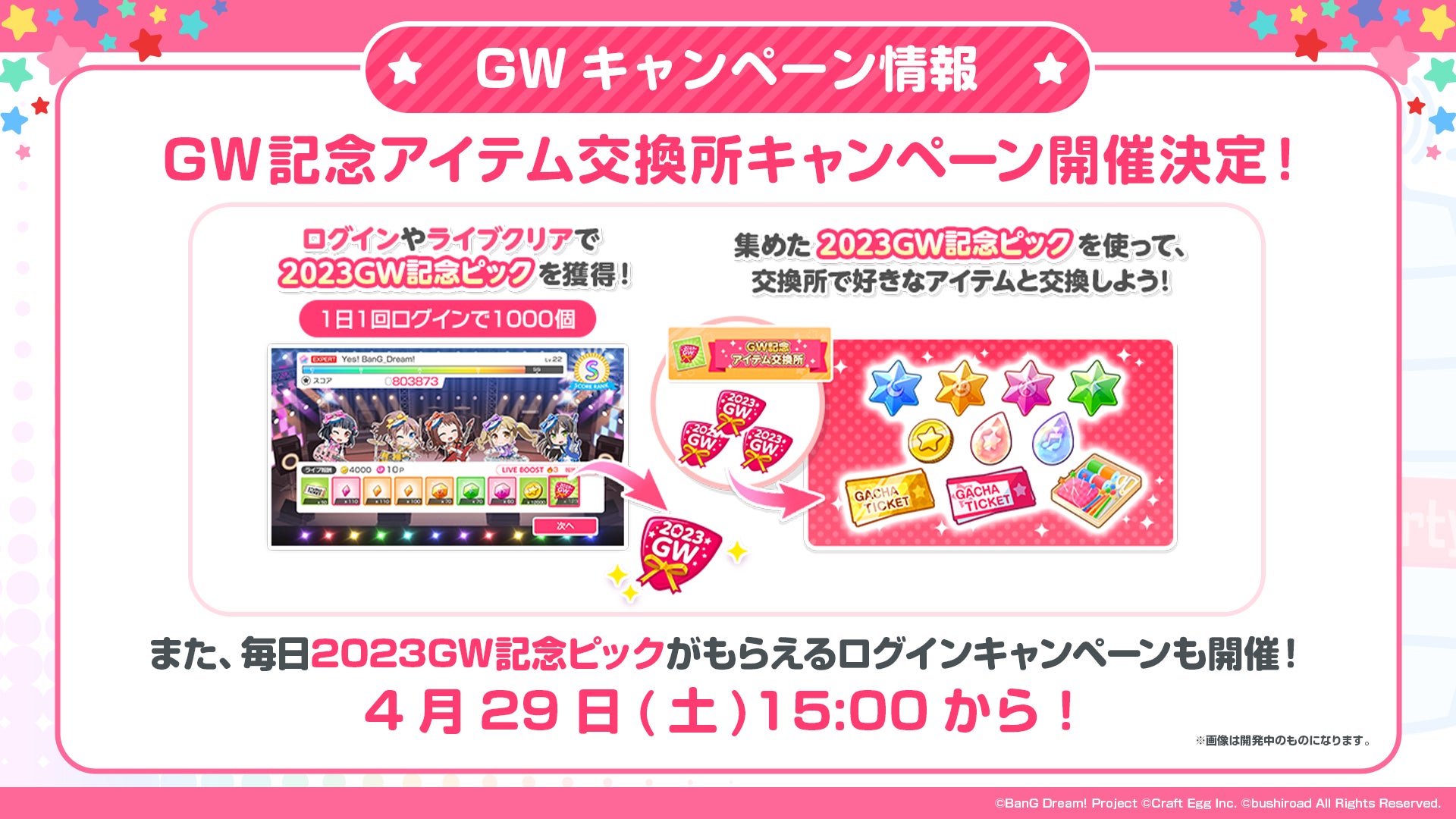 - 「バンドリ! ガールズバンドパーティ!」が2023年のゴールデンウィーク期間中にキャンペーンを開催