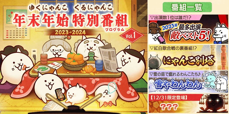 年末特別番組「2023年最多出演敵ベスト5!」や「雪やわんわん」など、季節限定イベントが開催されます。