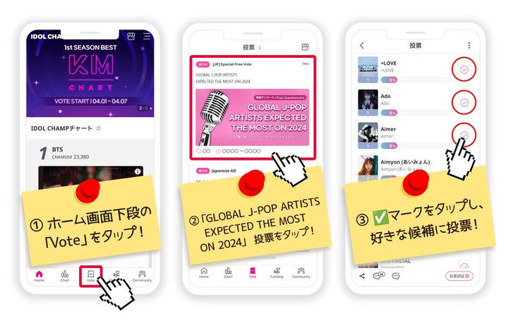 投票方法は『IDOL CHAMP』アプリ内で行うことができます。