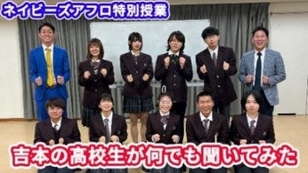 吉本興業高等学院では、ネイビーズアフロとの特別授業を実施し、吉本興業の高校生が質問をする様子を見ることができます。