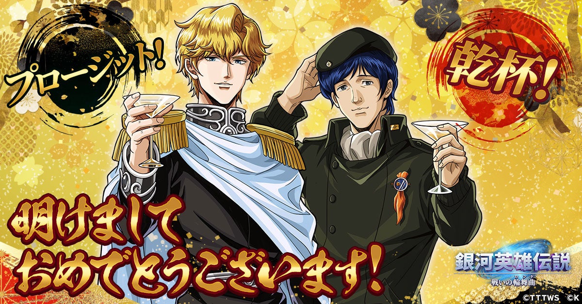 さらに、ラインハルトとヤン・ウェンリーが乾杯のグラスを手にした姿で登場します。