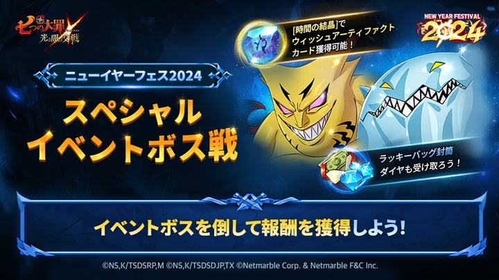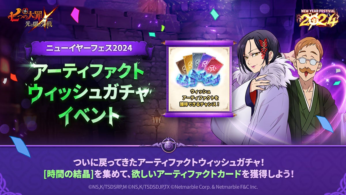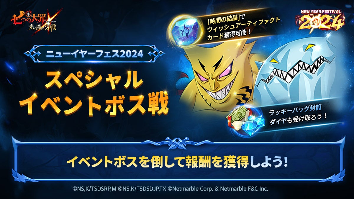 - ニューイヤーフェス2024、運試しイベント、スペシャルボス戦、ガラポンイベント、アーティファクトウィッシュガチャイベント