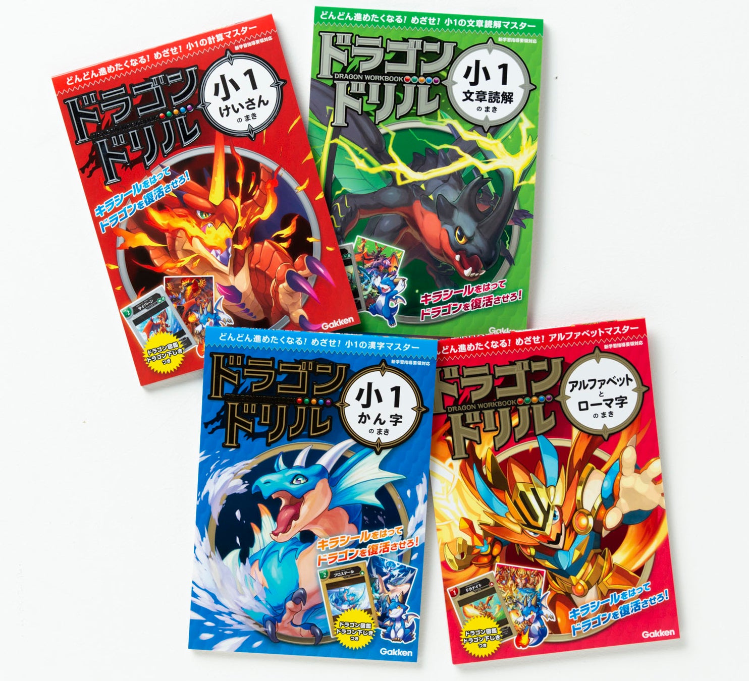 『ドラゴンドリル』は小1~4向けの勉強ドリルで、シールを貼っていくとドラゴンのイラストが完成する。