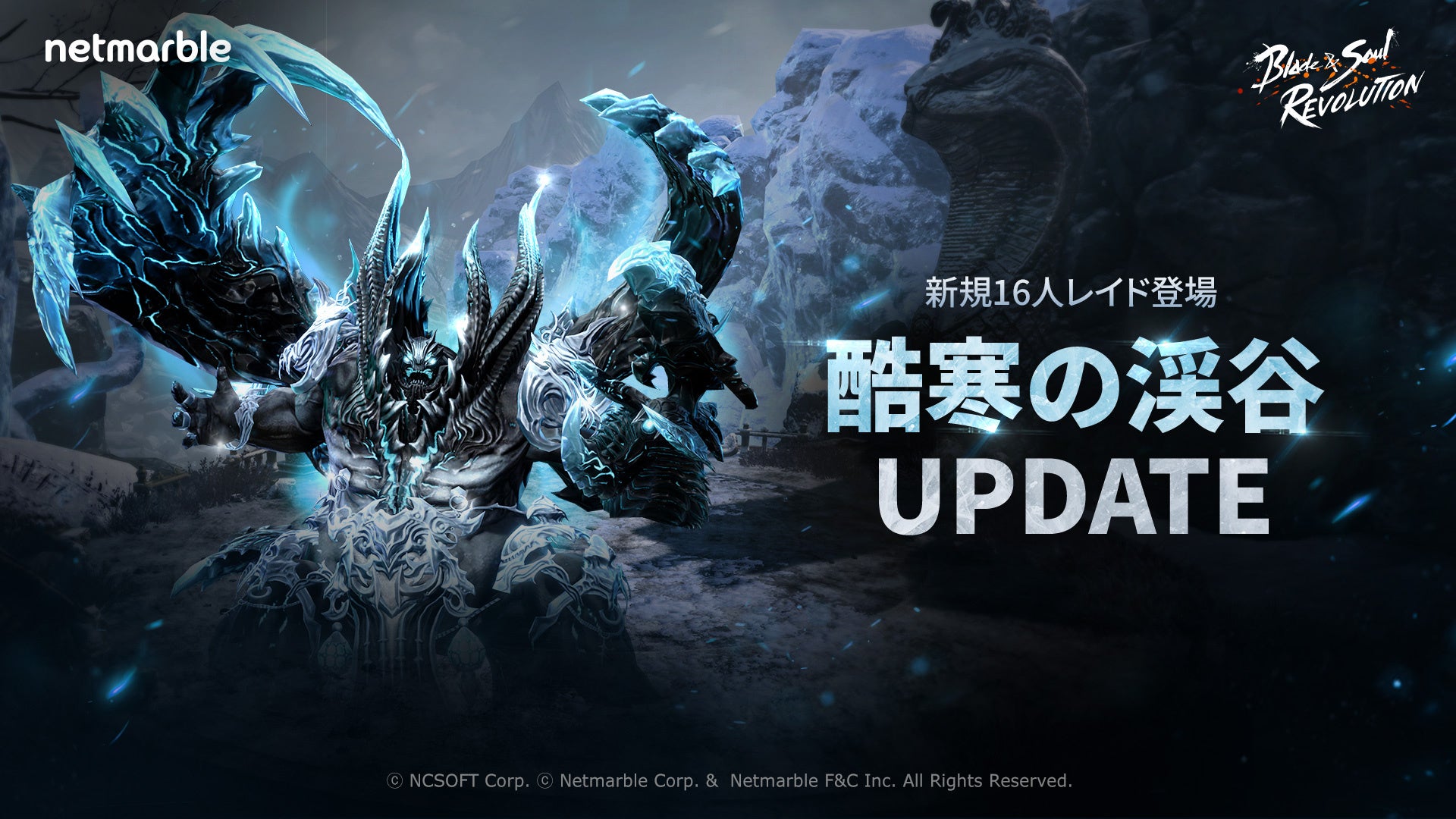 ネットマーブルは、スマートフォン向けの共闘アクションMMORPG『ブレイドアンドソウル レボリューション』において、新しいレイドダンジョン「酷寒の渓谷」の実装や期間限定イベントを開催するアップデートを行いました。