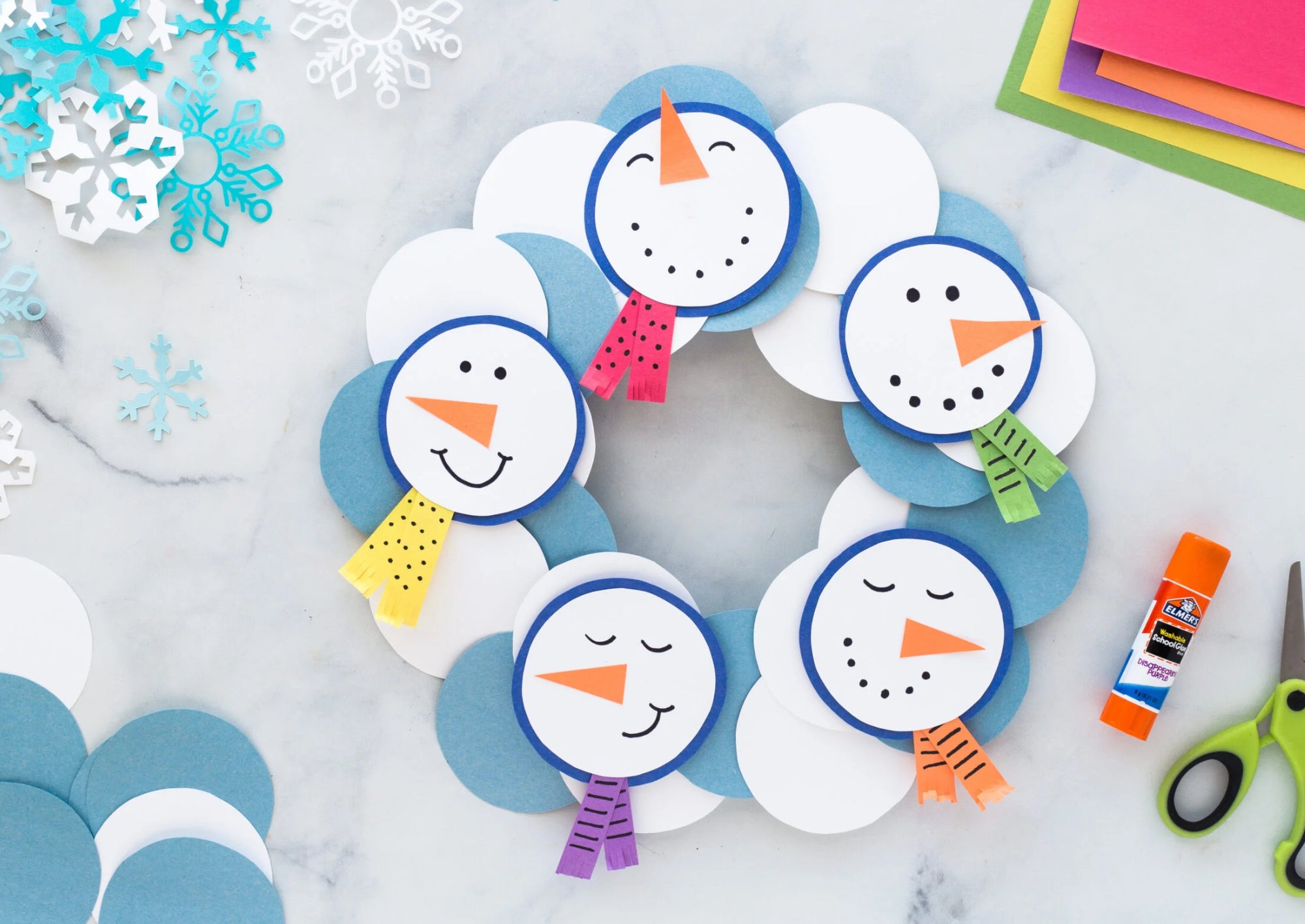 また、完全な英語環境で、冬に関する単語を学びながら、スノーマンリースの作成も行われます。