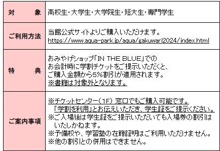• 「マクセル アクアパーク品川」で「アクアパーク学割」開催