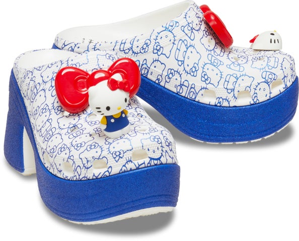 また、ヒールの高さが約8.8cmの「サイレンクロッグ」は、青をメインに3Dのハローキティジビッツ™︎が付属しています。