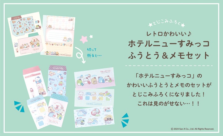 - とじこみふろくには「ホテルニューすみっコ」のふうとう&メモセットも付いている
