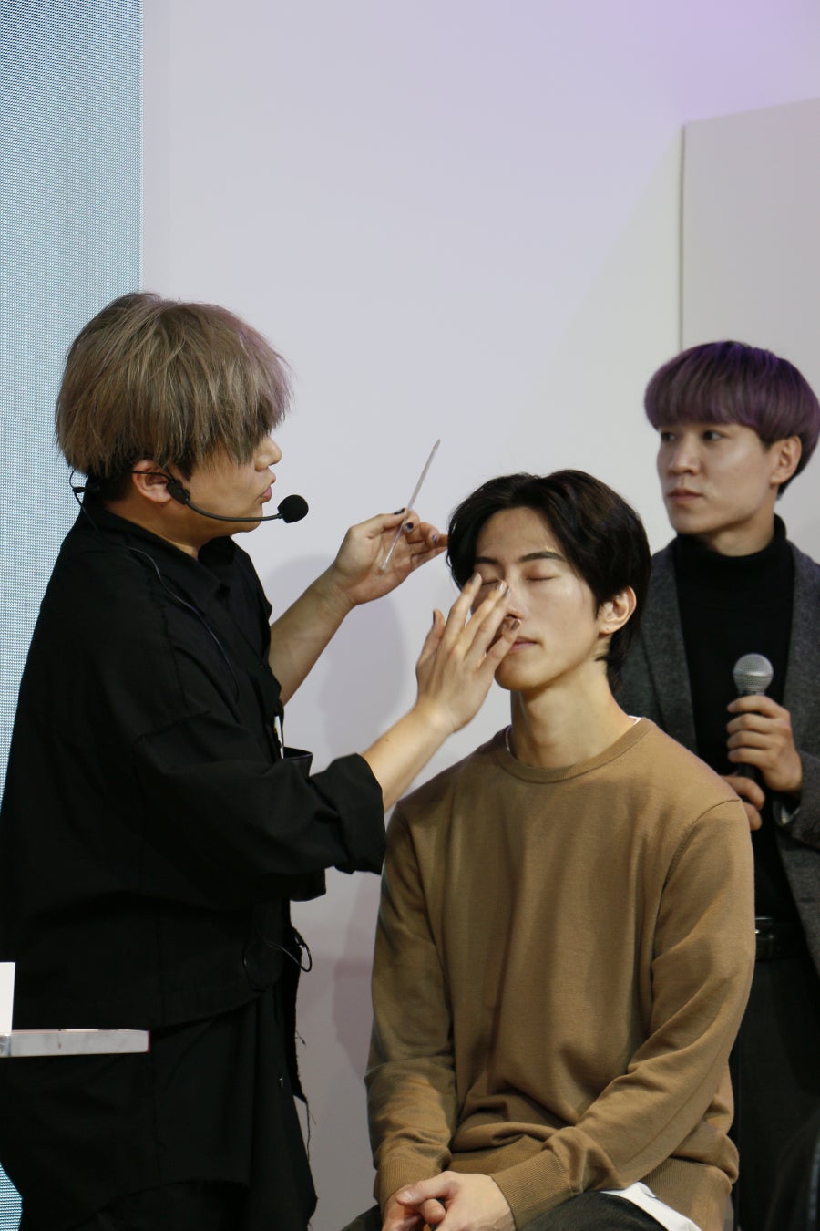 メイクアップアーティストは、清潔感を演出するためのメイクテクニックをレクチャーしました。