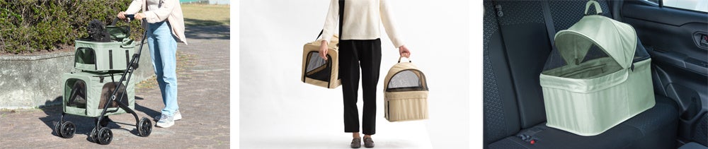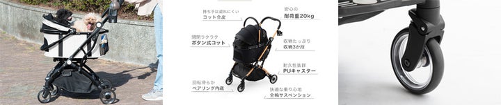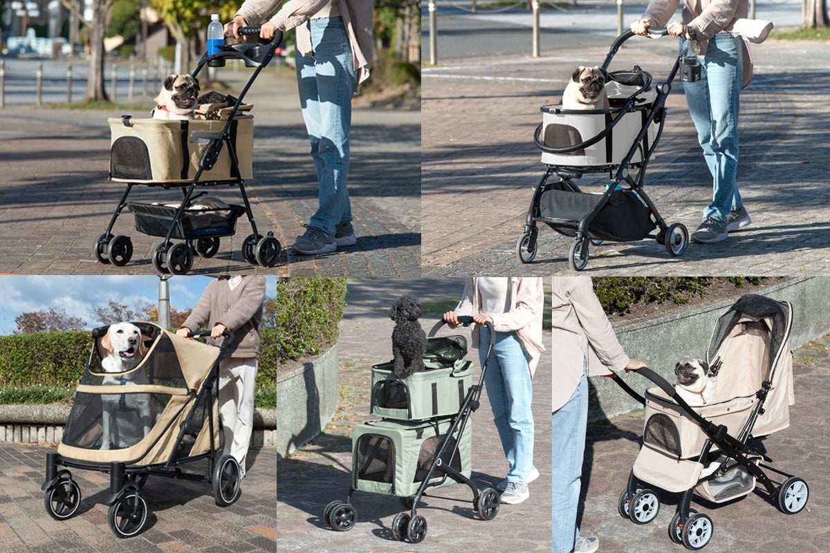 - 5種類の折り畳みペットカートが登場
