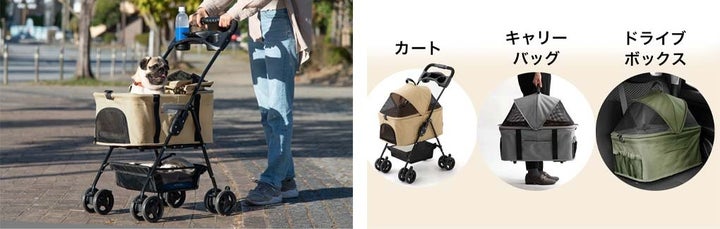 - 2段式のペットカートで最大4匹のペットを移動可能