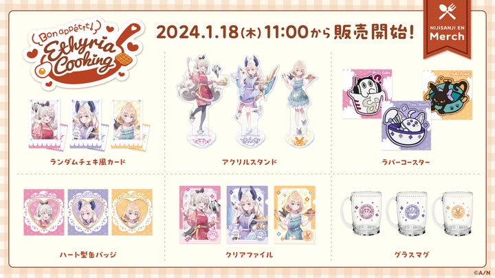 - VTuberプロジェクト「NIJISANJI EN」のユニット『Ethyria』の「Ethyria Cooking bon appétit!」グッズが発売される