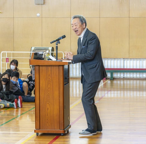 平塚市立金目小学校の児童約250名が参加した特別授業では、池上彰審査員長が自身の経験や紛争地域の実情を紹介し、「学校に通えることや学ぶことのありがたさ」を伝えました。