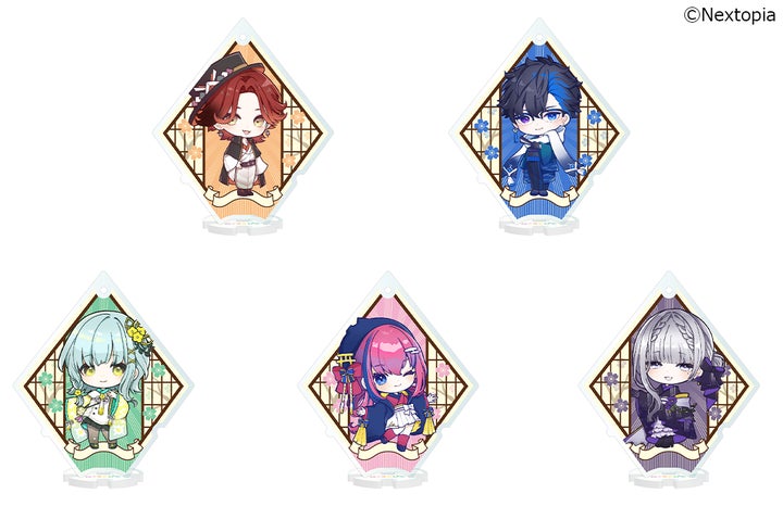 『ねくすとぴあ1期生 和装グッズ』は、デジタルグッズのデザインをベースにしたアクリルスタンドとアクリルキーホルダーで、部屋に飾ったり外出時に持ち運べます。