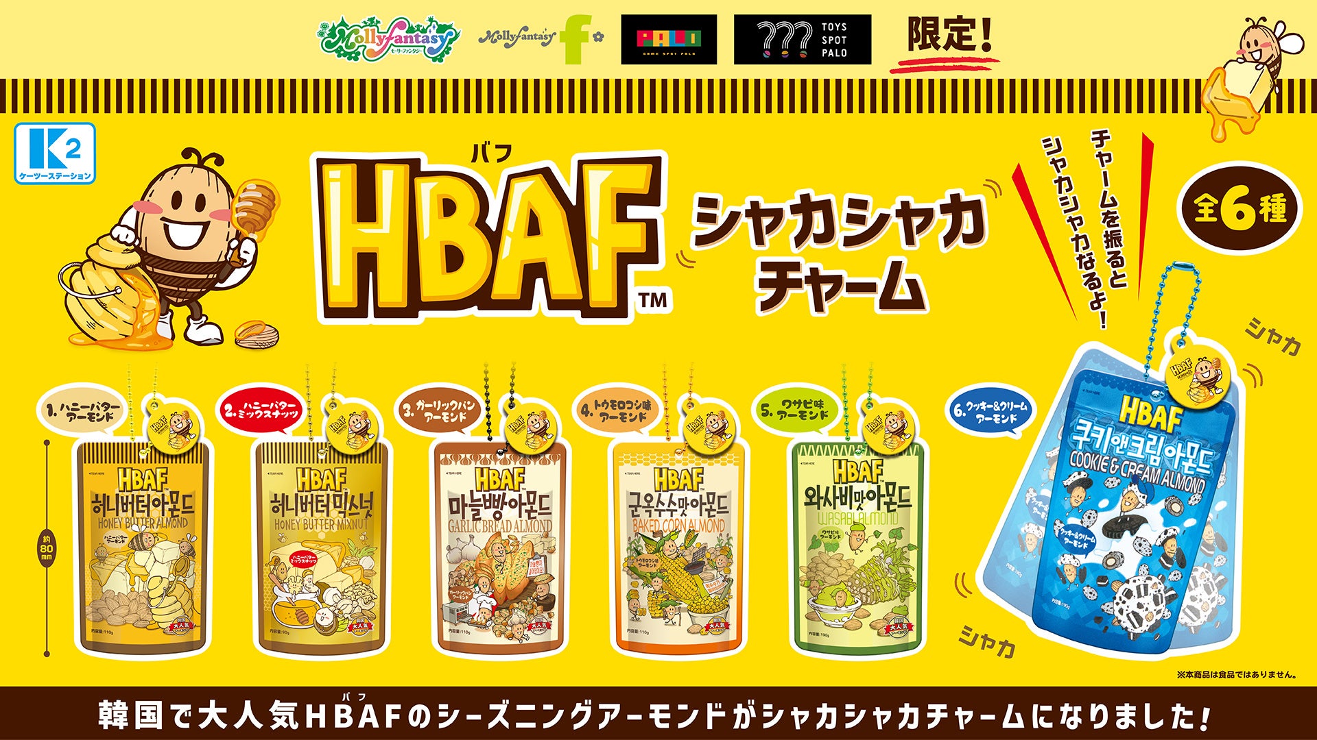- HBAFシャカシャカチャームは、韓国発の人気シーズニングアーモンド「HBAF」シリーズのミニチュアマスコット