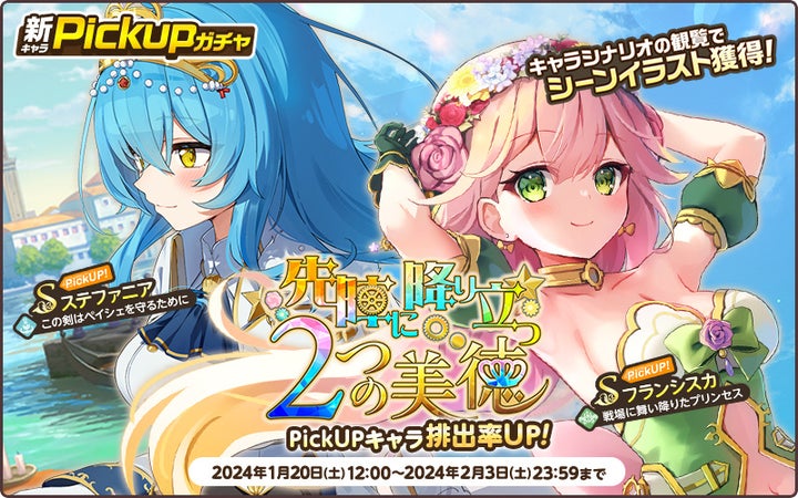 - 新キャラPickUPガチャ「先陣に降り立つ2つの美徳」開催