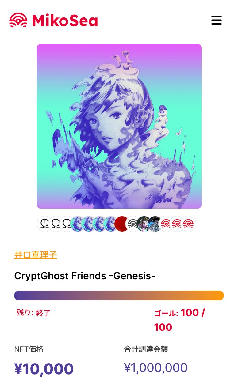 MikoSeaが運営するNFTクラウドファンディングプラットフォームで、Kagura Yosakoi GirlとCryptGhost Friends -Genesis-の2つのプロジェクトで合計500枚 総額300万円分のNFTが完売したことが発表された。