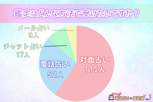 鑑定方法については、対面占いが最も人気で115人が選びました。